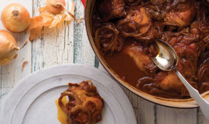 A great way to jazz up the same old onion soup recipe: a marriage of onion and tomato soup!