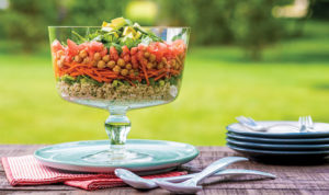 Sweet fruits, nutty quinoa, and crisp greens create a captivating combo.