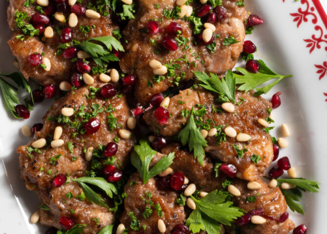 This chicken is smeared with a delicious rub and topped with a simple blend of fresh and frozen herbs