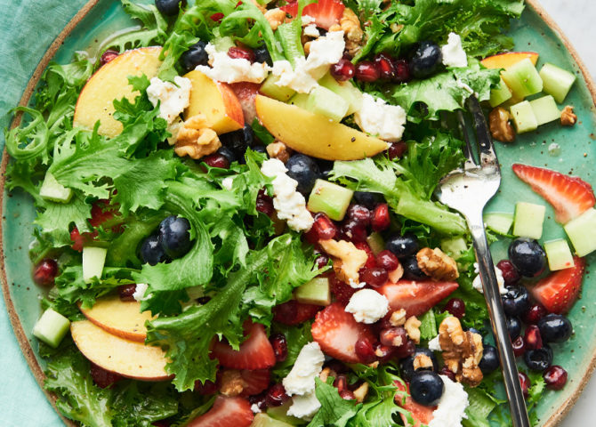 Perfect for summer, with grapes and apricots instead of the ubiquitous cucumbers and tomatoes