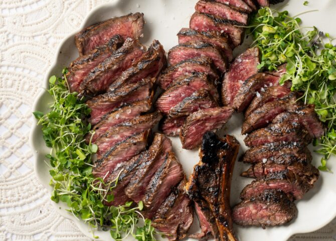 Vibrant pesto brings aromatic depth to these colorful potatoes and juicy tomatoes, making for a dish that’s as pretty as it is flavorful. Perfect hot off the grill or broiled in the oven for year-round enjoyment! Serves 4–6 30 colored baby potatoes (red, yellow, and purple) 30 cherry tomatoes (half red, half yellow) kosher salt,