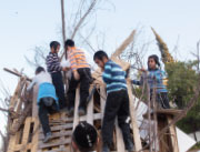 We go down to the forest around our neighborhood after school and gather fallen branches and sticks. We also look for old wooden beams broken furniture cardboard and paper. We put it all in a secret hiding place so no one takes it by mistake. Then around two or three days before Lag B’omer we start setting up the fire on an empty hill in an area without any trees or buildings nearby.